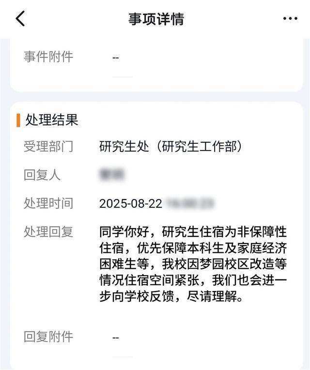 ▲学校回应。照片/JIMU新闻最近,一些互联网用户发表了出版物,学生需要在校园外暂时找到租金,例如中国艺术学院,Z Jiang在上学之前无法提供树木,他无法提供卧室。根据JIMU新闻的报道,8月25日,一名实习生 – 作者告诉记者,他是中国艺术学院硕士学生的第一年学生。根据学校的安排,据报道,秋天学校于9月1日报告,并在8月1日至7日之间组织了卧室申请,并提交了申请。但是,在8月19日,大学工作人员告诉他,卧室很紧,没有足够的床,因此他们必须首先为某些学生提供卧室。当学校即将开始时,他首先不得不租房。但是,租赁比卧室高得多。另一位实习生还告诉记者,他们没有被分配到贝德鲁MS,他们三个在校园外的房屋中分享了租金,每月租金为5,000元。 25日下午,相关部门负责大学后勤工作的工作人员在Z江省教育部的工作,回答说,中国艺术学院无法为所有学生组织住宿。随着学校今年的教师注册量表的扩大,与2024年相比,注册量增加了,而今年的研究生卧室要求的数量也有所增加。与2024年相比,今年的研究生卧室要求也有所增加。有消息称,校园的研究生没有卧室。但是,学校即将开始,并被告知这些新生无法提供学校卧室,并且必须在校园外临时出租房屋。随着注册日期的临近,您必须旅行当地出租市场才能找到房屋。对于学校而言,组织所有研究生级别可能会很难今天的发展。该学校今年扩大了本科注册量表,与2024年相比,注册人数的数量也增加了,今年的研究生卧室的申请数量也有所增加,因此与2024年相比,因此无法遵守学生的所有申请。学校可以向公众和学生解释这些客观情况,以获得每个人的理解。但是,可以更及时,仔细地完成相关工作。这些研究生将被告知学校开始附近没有卧室。结果,简短的租赁窗口将创建租赁窗口,尤其是来自其他州的一年级学生。租房并不是一个小问题,需要选择和比较。如果时间为时过早,那么找到家可能会很可耻。据当地教育部门的官员说,学校物流部提供免费的卧室,并尽一切可能分配它们应学生的要求和家庭因素。它们还允许学校尽可能考虑学生的需求,并允许更多的研究解决方案。解决问题的积极态度值得认可。近年来,中国艺术学院经历了艰难的住宿,据报道,一些研究生必须离开校园。一些研究生没有组织卧室,并且近年来出现在许多大学中。除Part -Time研究生外,不像往常一样提供卧室的研究生,一些享有声望的大学不再为包括高中生在内的全职研究生提供住宿。这种现象的背后是学校学生总数的不断增加,以及大学生卧室供应和需求的持续增加。尽管我国的高等教育规模有近年来成长,几所大学的学生卧室已经到了相对较晚,有些学校没有为毕业生提供卧室。这也是由于这个因素。为了积极回应和解决大学学生在大学学生建设的“小重要问题”,2024年,国家发展与改革委员会,教育部和其他部门将共同提出“提出指导意见,以增强大学学生大道的建设”,并通过大学的资本领域通过四个大学政策来建设学生。该文件还促进了大学的注册计划与遵守卧室区域之间的联系,并提议使用与大学生的遵守情况为注册计划的重要参考因素。 “原则上,回应之间有很大差距的大学和大学在总体学生中,强者不应添加注册指标。如果存在重大问题,他们应该减少注册指标。诸如“保留阻尼池”之类的机制可以满足学生的住宿需求,从而有足够的态度,这是大学学校的态度。学生和公众的地位。 Xin He(媒体)编辑 / Chi Daohua Profirsioner / Yang Li